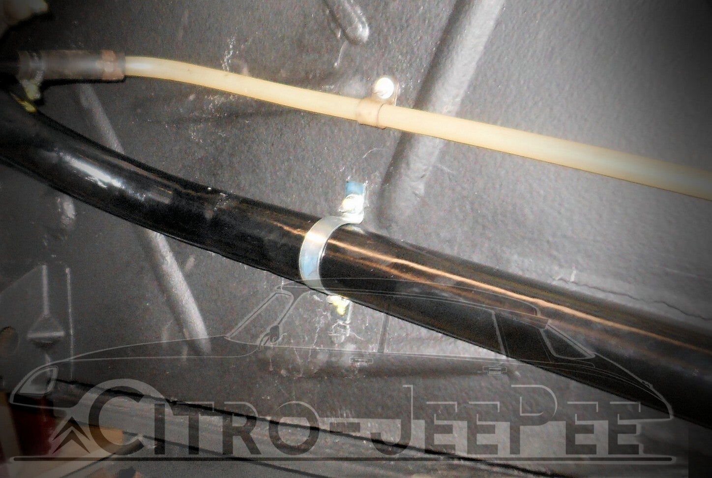 Deze klem kan worden toegepast om de vulpijp vast te zetten tegen de binnenzijde van het chassisgedeelte (onder het achterste rechter spatbord).