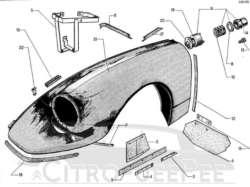 Dit rubber is voor uw linker voorscherm (spatbord) van uw Citroen ID & DS '-> 67 en Citro-JeePee levert deze per stuk.