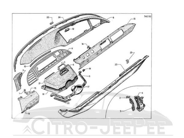 Dashboard rubber kunststof '65 - '69 versnellingspook halfautomaat Citroen ID & DS